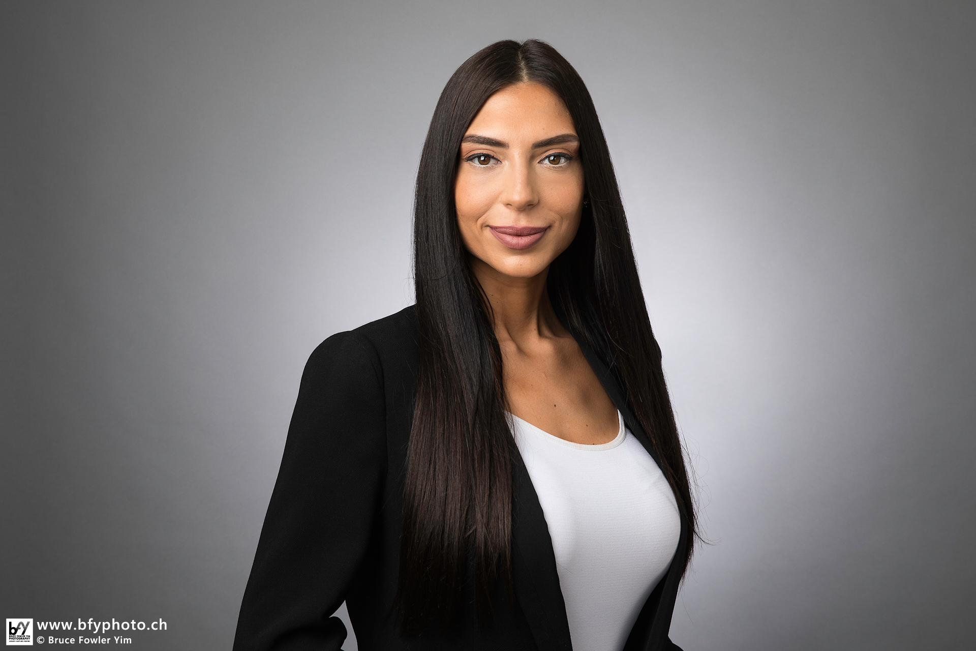 Bewerbungsfoto vor dem neutralen Hintergrund