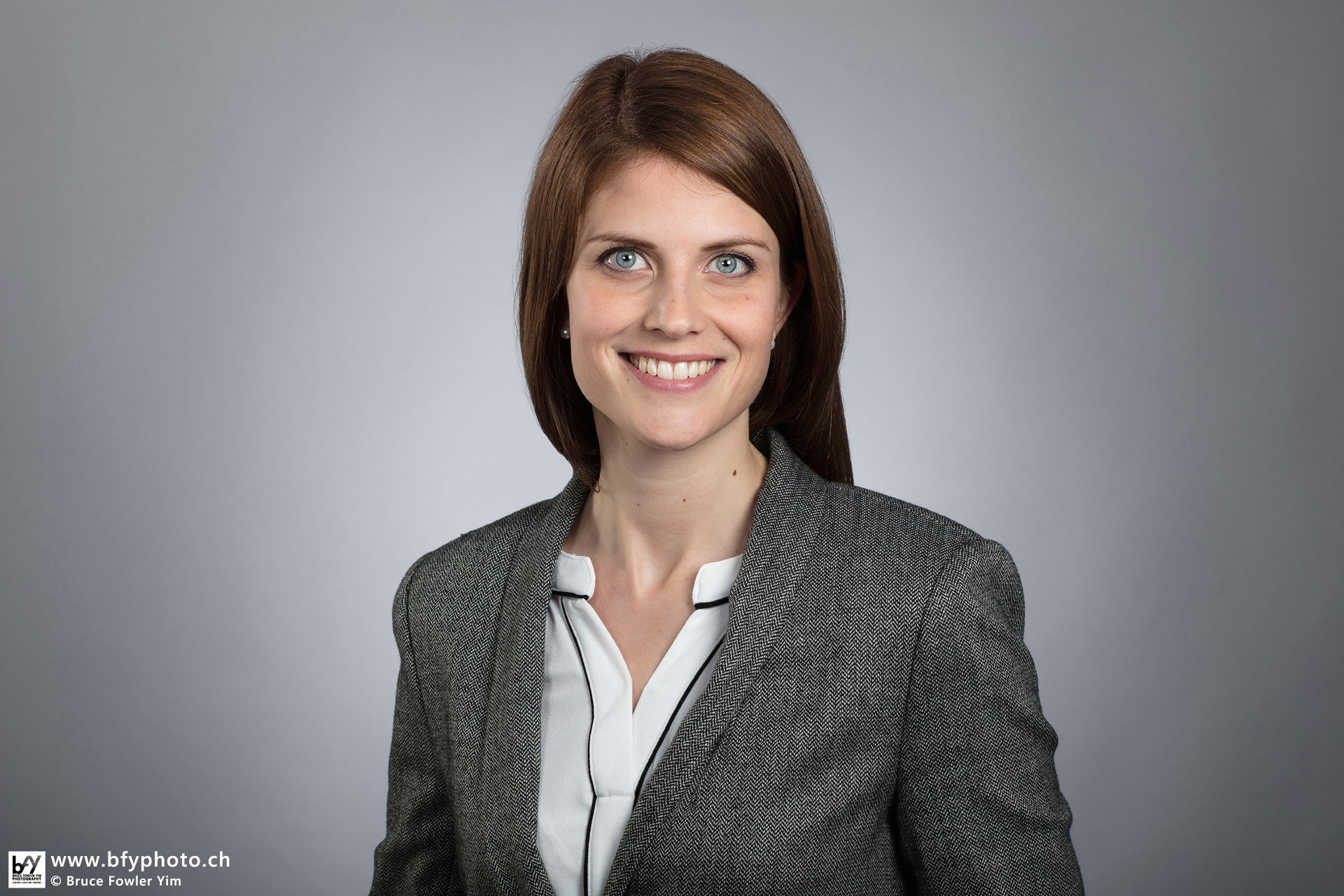 Bewerbungsfoto vor dem neutralen Hintergrund